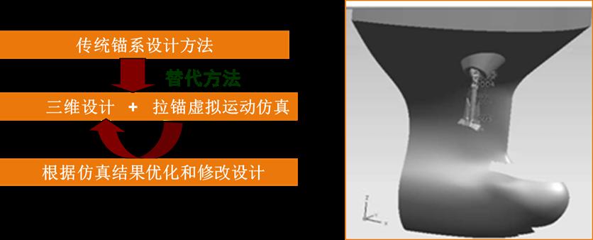 經(jīng)過與國內(nèi)行業(yè)權(quán)威設(shè)計(jì)院的合作過,并將該技術(shù)應(yīng)用于船舶建造中,對錨鏈筒、錨臺、錨唇、錨穴、錨、錨鏈、錨機(jī)、止鏈器、導(dǎo)鏈滾輪、船體等進(jìn)行三維設(shè)計(jì)和自動(dòng)建模,實(shí)現(xiàn)了三維錨系計(jì),保證了錨系設(shè)計(jì)中空間位置定位的準(zhǔn)確性,并通過三維軟件導(dǎo)出二維CAD圖紙,扭轉(zhuǎn)了一直以來二維圖紙與船廠錨系施工脫節(jié)的局面,極大提高了錨系設(shè)計(jì)的效率。除此之外,利用軟件的后期的仿真功能,模擬并預(yù)報(bào)收錨過程的動(dòng)態(tài)效果并給出調(diào)整方案。